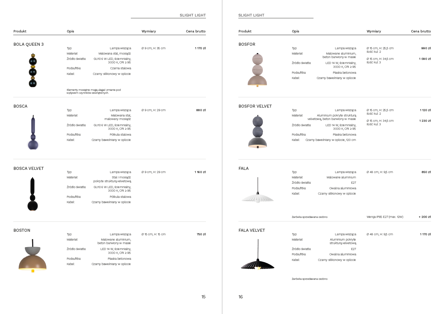 Znajdziesz w nim nie tylko szczegółowe informacje o cenach, ale także pełen zakres możliwości customizacji naszych lamp, w tym dostępnych kolorów, dedykowanych żarówek, opcji personalizacji kabli zasilających oraz wymiennych podsufitek, które można dostosować do konkretnych wymagań i oczekiwań wizualnych.