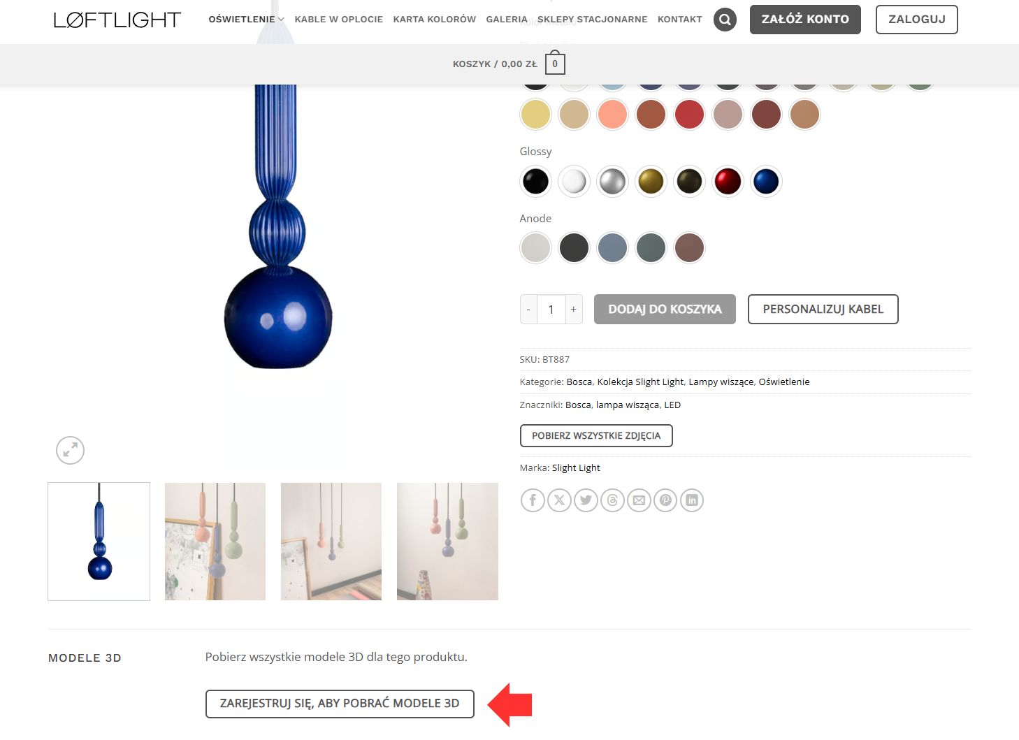 Otwórz stronę lampy, której model 3D chcesz pobrać.
