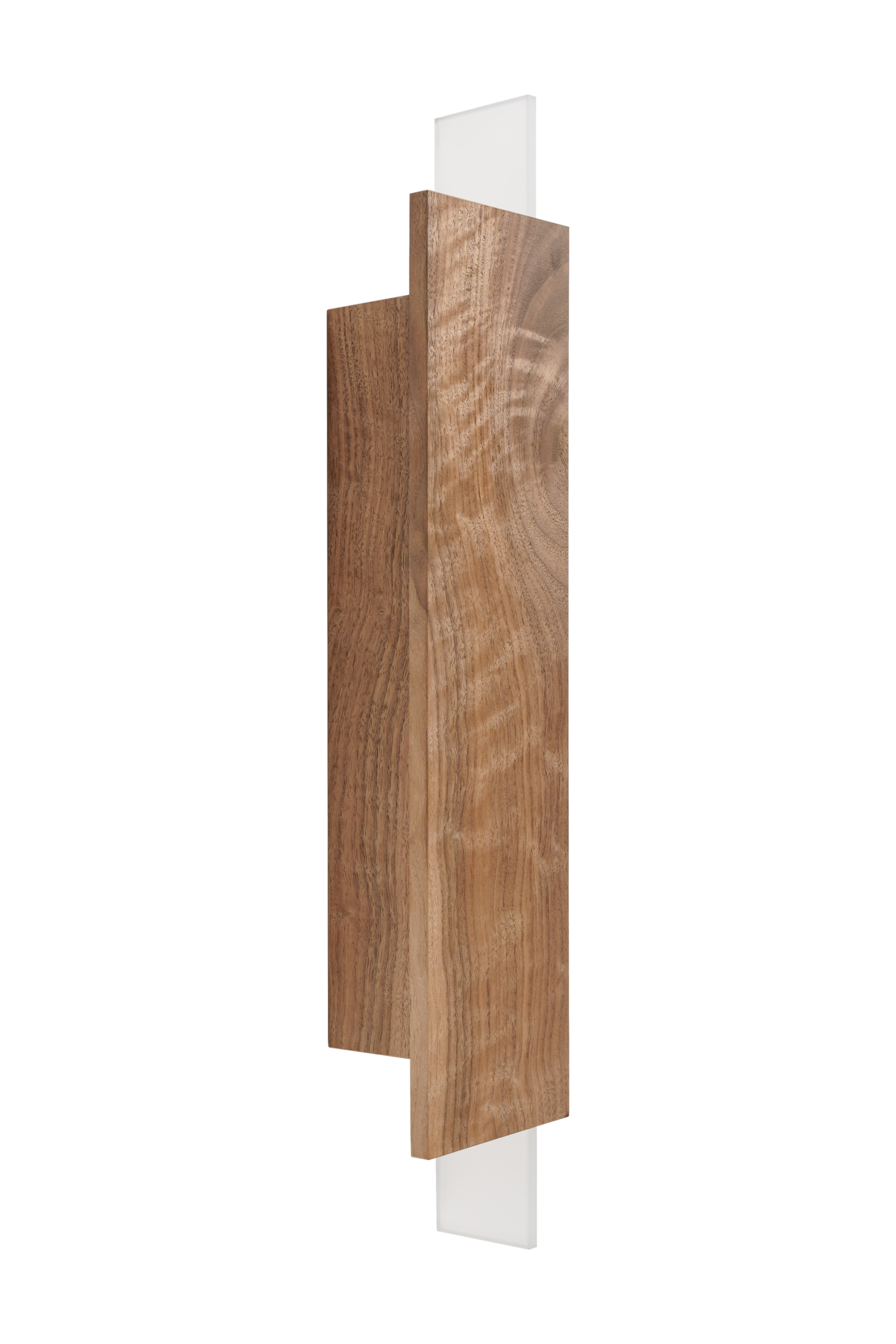 Blaze to kinkiet, który łączy solidność naturalnego drewna orzecha amerykańskiego z subtelnym rozproszeniem światła przez piaskowane szkło. Jego geometryczna forma i precyzyjne proporcje czynią go doskonałym uzupełnieniem nowoczesnych, minimalistycznych przestrzeni – zarówno mieszkalnych, jak i komercyjnych.