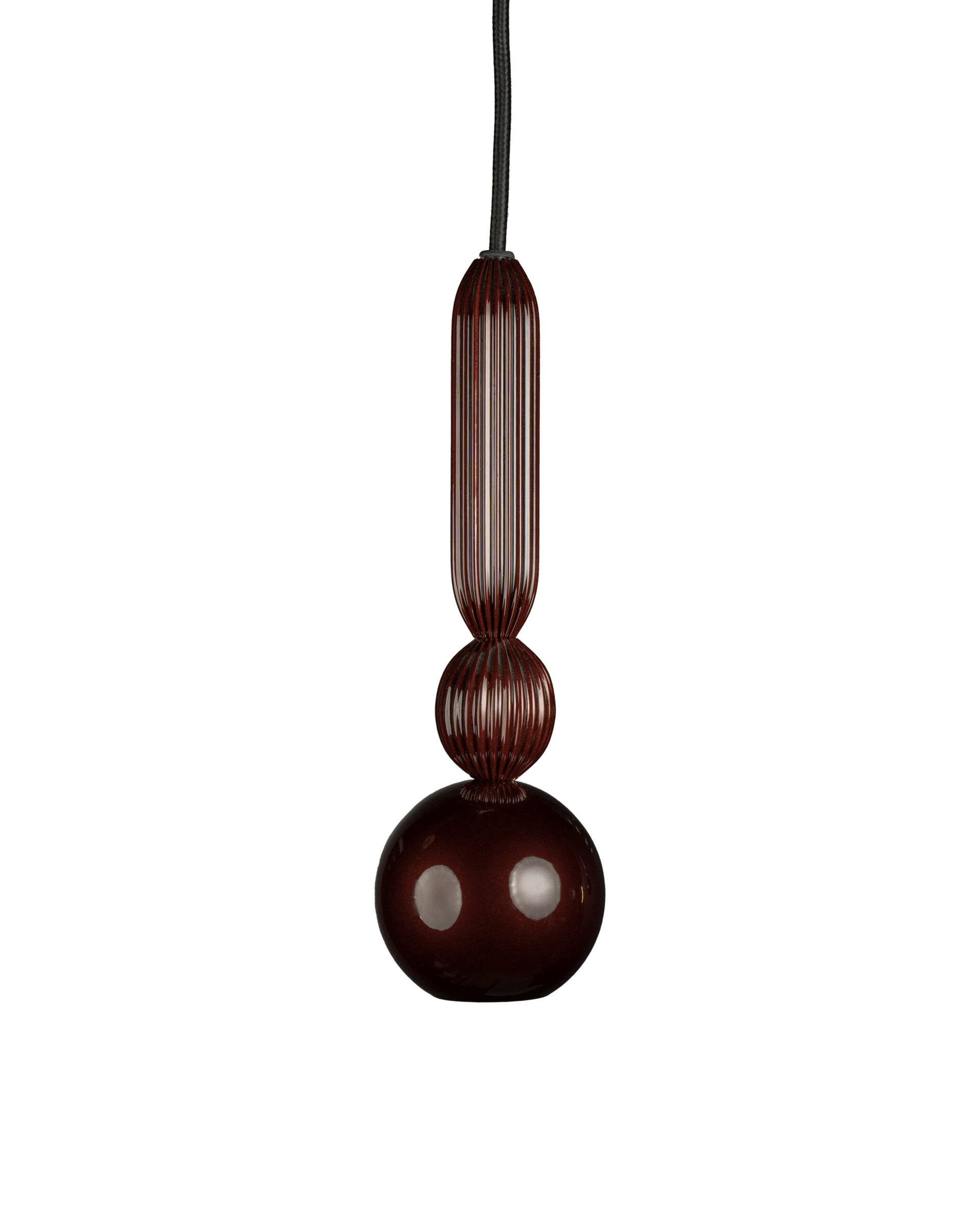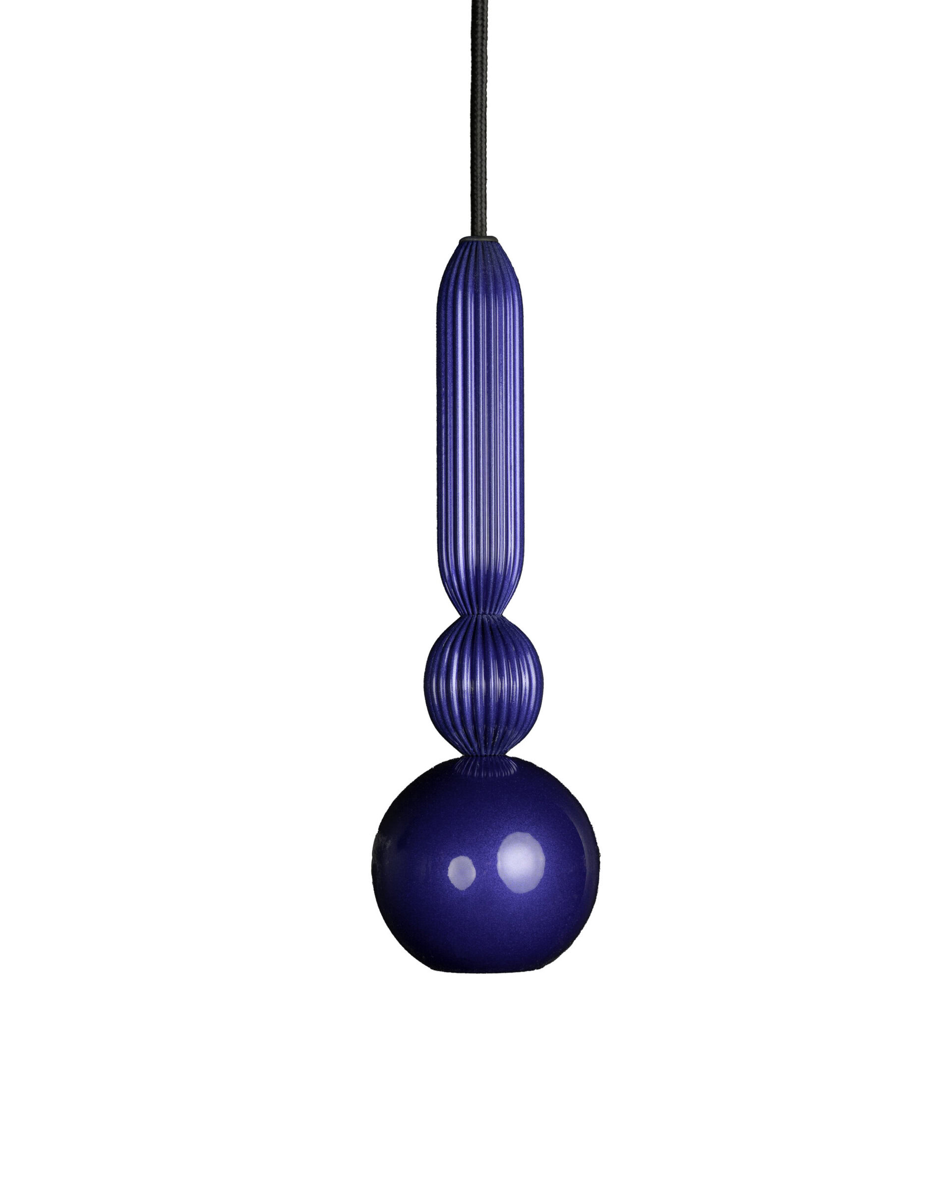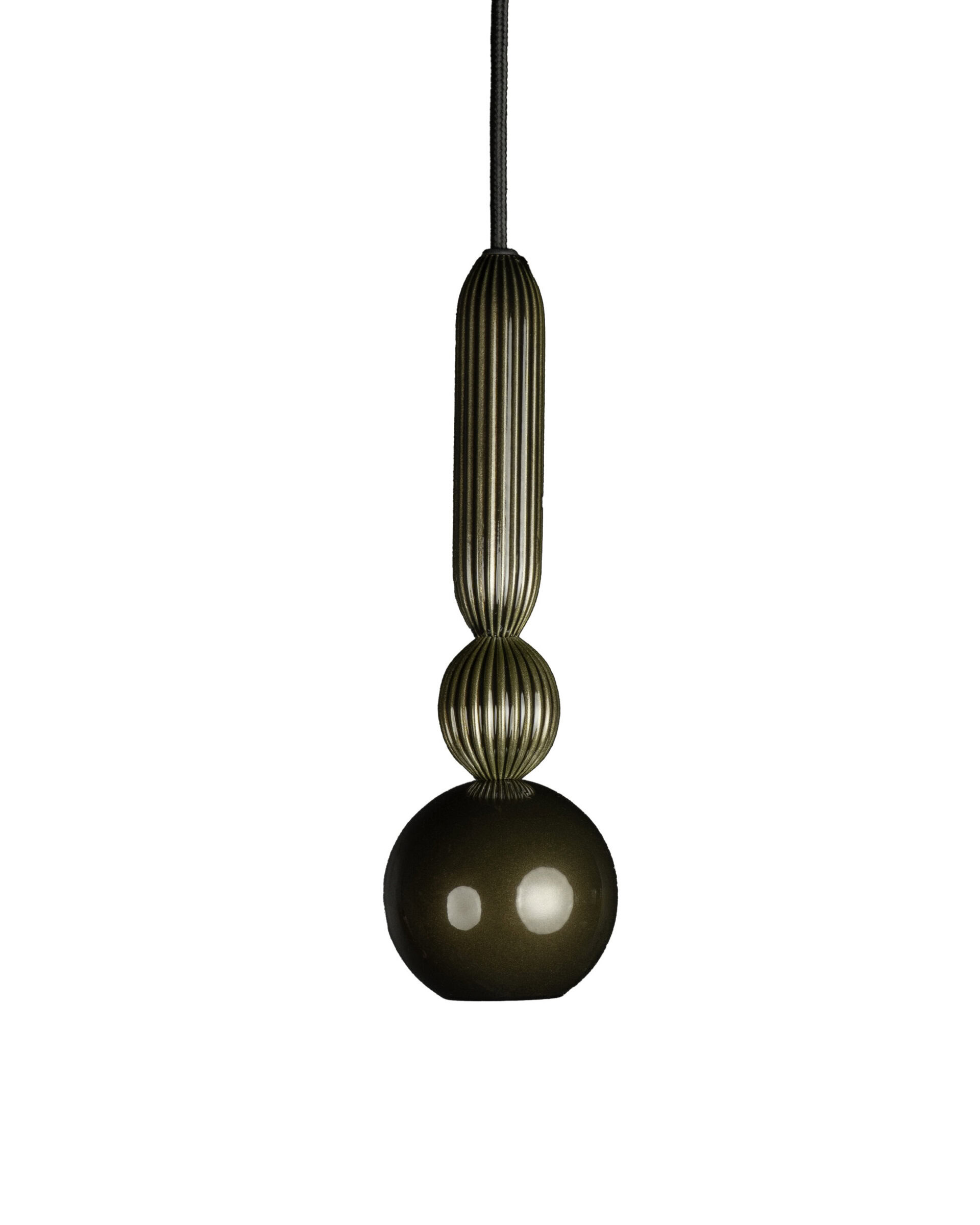 Zachowuje tę samą, kompaktową formę i charakterystyczny układ elementów: stalową kulę z wbudowanym źródłem światła oraz dwa ryflowane pierścienie z mosiądzu – mniejszy i wydłużony – umieszczone powyżej. Tym razem jednak każdy element lampy wykończony jest w kolorach z palety błyszczących Piano i Metalic Effect, które podkreślają refleksyjny charakter formy i wprowadzają do wnętrza grę światła oraz głębię koloru.