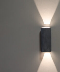 Rulon to betonowy kinkiet ścienny, który łączy industrialną estetykę z funkcjonalnym, dwukierunkowym światłem. Prosta forma w postaci ręcznie odlewanego walca nadaje wnętrzu surowego charakteru, jednocześnie tworząc przyjemny efekt świetlny – zarówno ku górze, jak i ku dołowi. Kinkiet dostępny jest w dwóch wariantach: z oprawkami GU10 lub z wbudowanymi modułami LED.